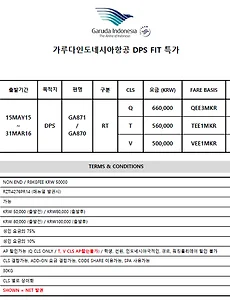 가루다항공 개인특가 요금 인상공지(2016.03.31일까지)